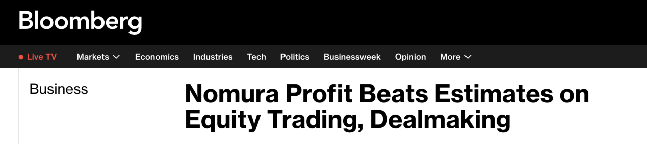 外媒:野村公司证券股票交易业务表现超预期